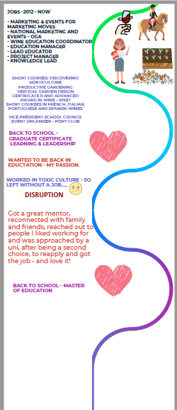 Piquing interest in further study – whether a micro-credential or short course or a qualification – is definitely part of my remit, in my current role. The notion of lifelong learning for industry and graduate students. Having worked in many organisations where Change Management has not been done effectively I’m keen to imbue deeper empathetic understandings of the learner and the wider cultural influences to ensure learning is not only relevant to the subject-matter but to the societal changes we are experiencing.